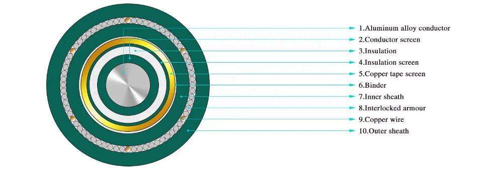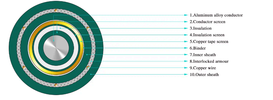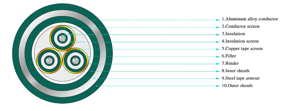 Lưu ý: Cáp bọc thép một lõi phù hợp với hệ thống DC, không dành cho hệ thống AC, nên sử dụng lớp bọc thép bằng vật liệu không từ tính hoặc sử dụng biện pháp cách điện từ tính.