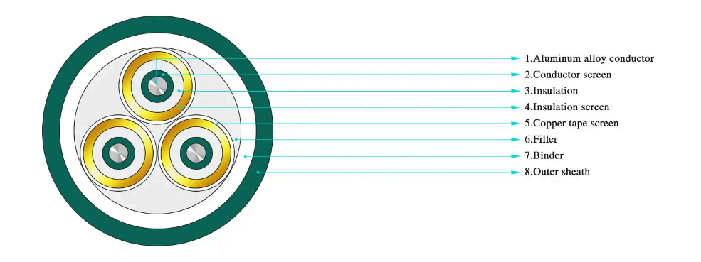 ·Cáp nguồn cách điện XLPE 3 lõi cấp điện áp định mức từ 3,6/6kV~26/35kV